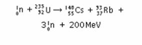 Fisiunea se face prin absortia unui neutron de un nucleu greu de uraniu 235, in urma reactiei rezultand cesiu 140, rubidiu 93, 3 neutroni si 200 MeV sau 7.7x10-12 calorii. In cadrul unei reactii de fisiune nucleara este eliberata o cantitate de energie de 10 milioane de ori mai mare decat in cazul unei reactii chimice obisnuite. Energia eliberata de cantitatea de 1 Kg de uraniu 235 este de 18.7 milioane Kwh de caldura. Neutronii eliberati in urma reactiei reactioneaza cu alte nuclee de uraniu, in urma reactiei neutronii inmultindu-se. In urma acestui proces se formeaza o reactie sustinuta sau o reactie in lant care duce la o eliberarea continua de energie.