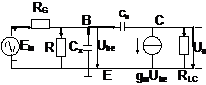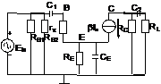 Fie etajul emitor comun prezentat in figura 1. Schema echivalenta de medie frecventa a circuitului este: |