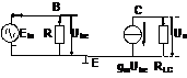 Fie etajul emitor comun prezentat in figura 1. Schema echivalenta de joasa frecventa a circuitului este: |