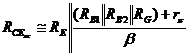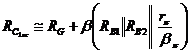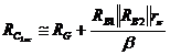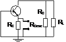 Etajul emitor comun prezentat in figura 1 pune in evidenta existenta a 3 condensatori, C1, C2, CE. Determinarea frecventei inferioare de lucru prin metoda constantelor de timp in scurtcircuit se reduce la calculul rezistentelor echivalente RC1sc , RC2sc si RCEsc care se vad la bornele acestor condensatori. Calculul lui RCEsc se face cu ajutorul schemei din figura: |