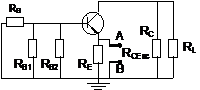 Etajul emitor comun prezentat in figura 1 pune in evidenta existenta a 3 condensatori, C1, C2, CE. Determinarea frecventei inferioare de lucru prin metoda constantelor de timp in scurtcircuit se reduce la calculul rezistentelor echivalente RC1sc , RC2sc si RCEsc care se vad la bornele acestor condensatori. Calculul lui RC2sc se face cu ajutorul schemei din figura: |