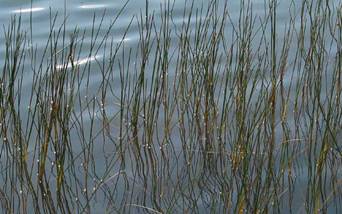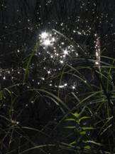 Suprafetele firelor aspre de stuf produc mici valuri în apa reflectând lumina solara. Milioane de imagini ale Soarelui sunt create în miniatura. Imaginile arata ca petele de lumina apar acolo unde lamele ies din apa.