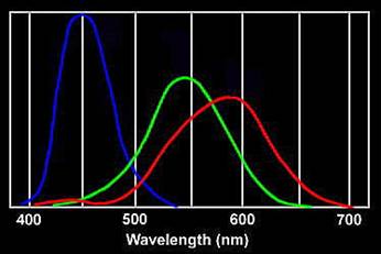 Curbele de raspuns ale celor trei conuri ale ochiului uman