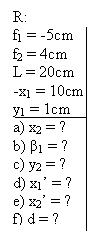 R: f1 = 4cm f2 = 6cm L = 20cm x2' = 10cm x1 = ?