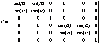 In cazul grinzilor continue, matricea de transformare prin rotire a deplasarilor, fortelor si eforturilor din extremitatile fiecarei bare este de forma: