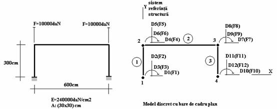 Figura 3 Structura de cadru plan si modelul discret corespunzator