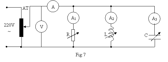 b) Pentru tensiune constanta (ca valoare efectiva) la bornele circuitului paralel - masurata cu voltmetrul V - se regleaza diferite valori ale parametrilor R, L, C indicatiile aparatelor notāndu-se īn tabelul 2. Se realizeaza si rezonanta de curent.