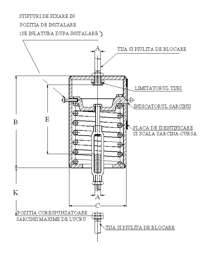 caracteristica elastica (K) si de deplasarea (cursa) pe verticala (Dh) efectuata de suport intre pozitiile