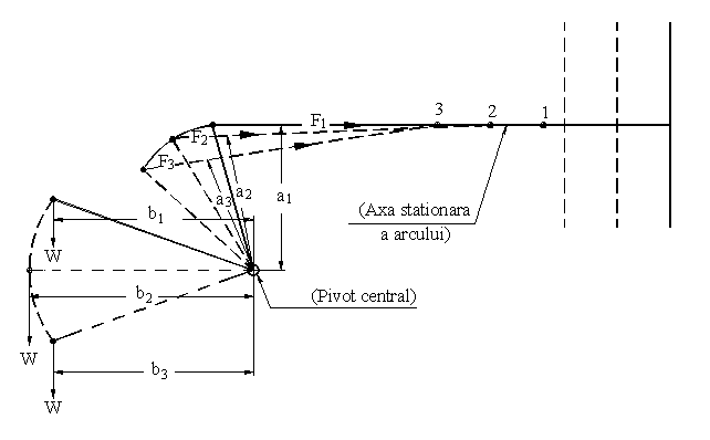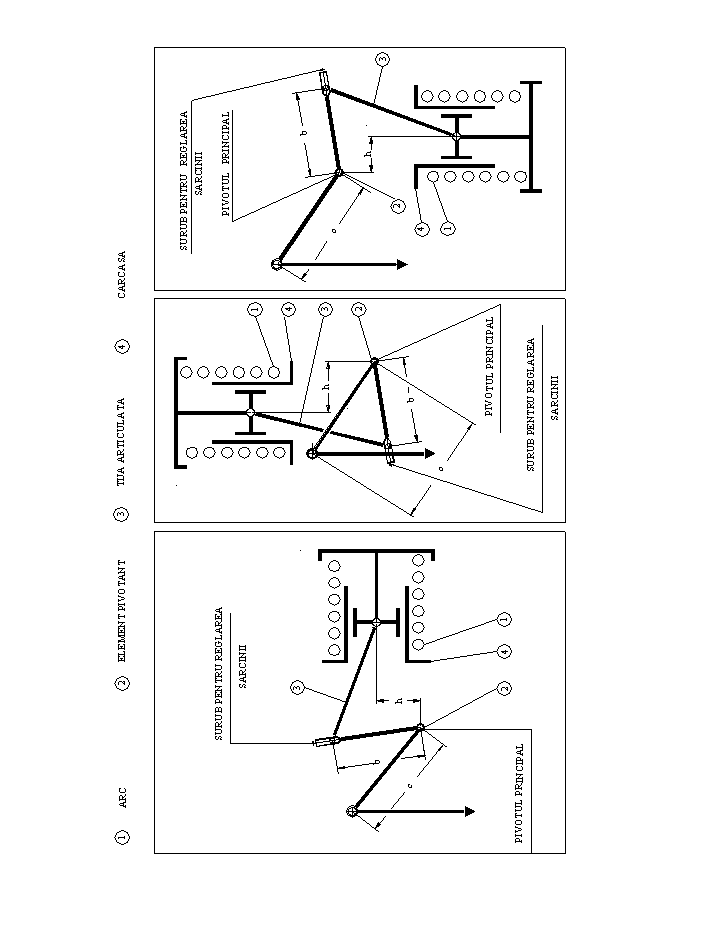 (Cu privire la aceasta schema: se iau trei pozitii ale cursei sarcinii-superioara, mijlocie si coborata- si se scriu momentele pentru aceste pozitii fata de pivotul central)
