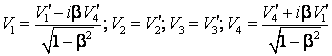 Se verifica simplu ca utilizand notatiile (4.62) si (4.63), transformarile Lorentz (4.34) si (4.35), devin: