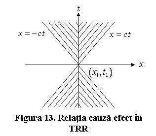 Teoria relativitatii restrinse permite impartirea continuumului spatiu-timp in trecut, prezent si viitor (fig.13).