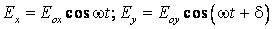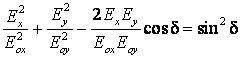 si eliminam timpul intre cele doua expresii, de unde obtinem o ecuatie identica cu (2.86) de la compunerea oscilatiilor perpendiculare: