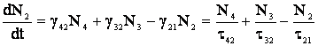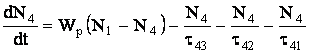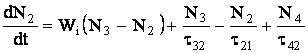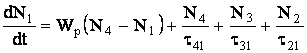 Unde τij reprezinta constantele intervalului de timp de relaxare, Ni reprezinta populatia nivelului I, Wi este coeficietul emisiei stimulate, Wp este rata de pompaj ( The pomping rate), K este coeficientul care determina fractiunea radiatiei fluorescente emise intr-un mod coerent si PE este densitatea energiei campului.