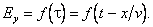 Din teoria ecuatiilor cu derivate partiale se stie ca ecuatia undelor are solutia sub forma unei functiuni arbitrare f de argument