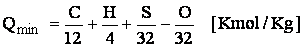 Pentru combustibilii solizi si lichizi, oxigenul teoretic necesar arderii perfecte se determina din reactiile de ardere prin insumarea cantitatilor de oxigen reclamate pentru desfasurarea reactiilor de oxidare din care se scade oxigenul propriu continut de combustibil: