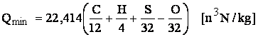 Volumul de oxigen necesar arderii complete a unitatii de combustibil se numeste oxigen minim necesar sau oxigen teoretic necesar. Cum participatia volumica a oxigenului in aerul atmosferic este de 0,21 , volumul de aer minim necesar pentru arderea completa a cantitatii unitare de combustibil este: