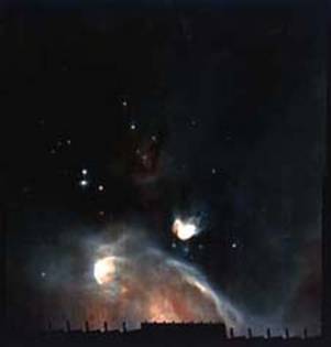 Imagine obtinuta cu ajutorul telescopului cu infrarosu . imaginea nu se poate vedea cu un telescop optic pentru ca lumina vizibila e blocata de praful din jurul stelelor care se nasc iar radiatia infrarosie nu.