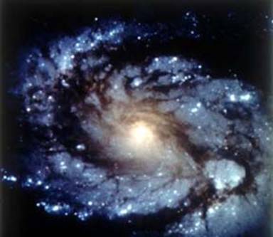 Imagine a galaxiei M 100 facuta de telescopul Hubble . Acesta poate vedea obiecte aflate la 15 miliarde ani lumina departare