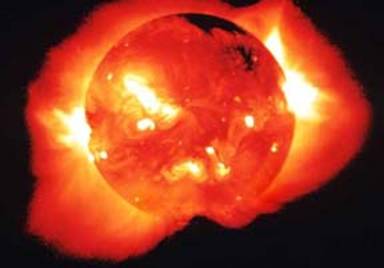 Imagine în raze x a soarelui . Gazele fierbinti din soare produc raze x care sunt detectate de telescoape cu raze x .