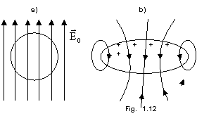 Se consideră un câmp electric omogen (fig.1.12a), în care urmează să se introducă un corp din material conductor neîncărcat. Sub acțiunea câmpului E0, exterior, sarcinile libere din conductor se deplasează și apare un câmp electric propriu EP (fig.1.12b ). Acest fenomen de încărcare cu sarcini de semn contrar a diferitelor zone din materialul conductor introdus în câmp, se numește influență electrostatică.
