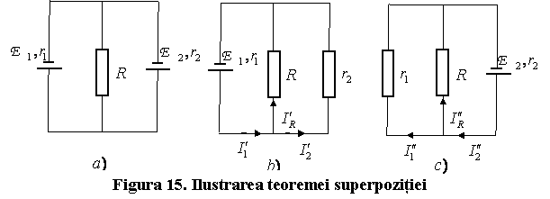 Curentul electric dintr-o latura a unui circuit i 333c22d n care exista mai multe surse este suma algebrica a curentilor produsi in acea latura de fiecare sursa in parte, daca ar actiona singura in circuit, celelalte surse fiind scurt-circuitate sau inlocuite cu rezistenta lor interioara (daca rezistenta interioara este diferita de zero).