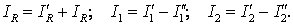 Curentii reali din circuitul a) vor fi, conform teoremei superpozitiei: