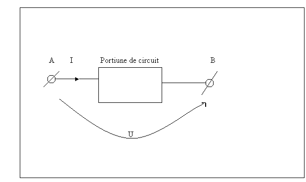 Consideram o portiune de circuit electric cuprinsa intre doua puncte,A si B (circuit dipolar) formata numai din consumatori (circuit pasiv). Daca intre punctele A si B tensiunea este U, atunci intre aceste puncte va circula un curent de intensitate I.