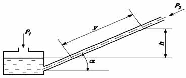 Lungimea y a coloanei de lichid din tubul īnclinat se determina cu relatia data.