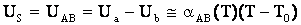 Din relatia tensiunii se observa ca daca temperatura capetelor reci T0 este mentinuta constanta, atunci, prin masurarea diferentei de potential UAB se poate determina temperatura T a capatului sudat care, īn regim stationar coincide cu temperatura mediului īn care se afla acesta. Valoarea coeficientului Seebeck aAB, depinde de perechea de electrozi A si B ce alcatuiesc termocuplul si prin aceasta determina forma caracteristicii statice a fiecarui termocuplu.