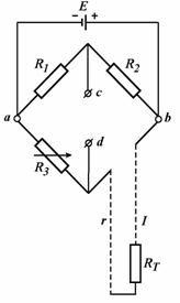 unde: R1, R2 - rezistente fixe; R3 - rezistenta variabila; RT - traductor termorezistiv;