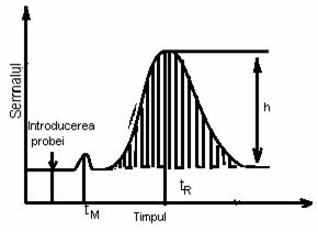 Timpul la care apare maximul unui pic, masurat din momentul introducerii probei, se numeste timp de retinere, tR, si este caracteristica calitativa a componentului respectiv. Īnaltimea picului h, sau aria suprafetei lui A, constituie parametrul cantitativ, proportional cu cantitatea de component.