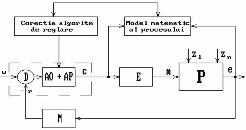 Acest tip de regulatoare se utilizeaza īn situatiile īn care procesul este condus optimal. Acest lucru presupune ca starea procesului nu este stationara ci variabila, ea fiind dirijata īntr-o anumita zona īn care o anumita functie obiectiv este maximizata sau minimizata. Pentru a realiza acest lucru se utilizeaza regulatoare cu marime de referinta variabila dupa o anumita functie de timp. Aceasta functie notata w(t) este stabilita de un element de corectie ce primeste informatii din proces prin intermediul modelului matematic, MM, static sau dinamic determinat pentru acesta.