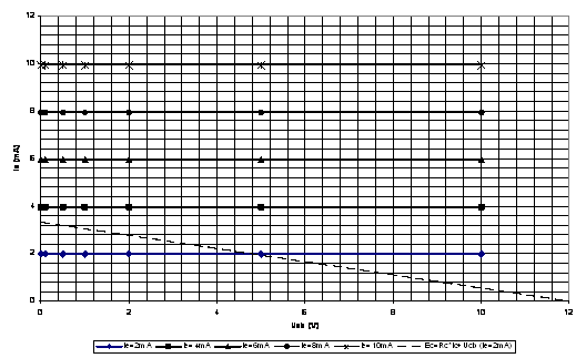 Cu montajul elementar descris anterior se determina punctul static de functionare pentru Rc=3.6kΩ, Ec=12V si IE=2mA. Se compara valoarile experimentale cu cele obtinute grafoanalitic.