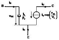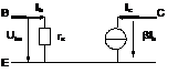 Modelul matematic aproximativ al unui unui tranzistor bipolar npn care lucreaza in regim activ normal este: |