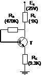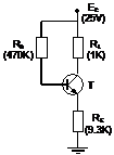 This problem treats the problem of the operating modes. For the circuit presented in figure 12, determine the operating mode for the transistor. Assume that the resistor has usual values. |