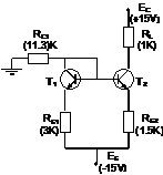 This problem treats the problem of the operating modes. For the circuit presented in figure 15, determine the operating mode for the transistors. Assume that the resistors have usual values. |