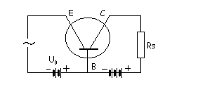 Pentru ca semnalul amplificat sa nu fie deformat, in circuitul emitorului se introduce o tensiune continua U care are rolul de a stabili un punct de functionare al tranzistorului: tensiunea U produce unanumit curent de emitor, in jurul caruia se produc variatiile dare de tensiunea alternativa. Daca se alege punctul de functionare pentru care Ie=0, dioda emitor-baza permite numai trecerea alternantelor pozitive, pentru care este polarizata direct si deci tranzistorul functioneaza ca detector.