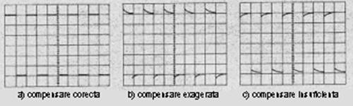 Cuplarea osciloscopului cu semnalul de masurat in curent continu nu pune nici o problema, este foarte usor de realizat cu ajutorul unui divizor de tensiune extern. In curent alternativ, lucrurile se complica mult pe masura ce fregventa creste. Cablul (cordonul) din care este realizata sonda, prezinta o anumita reactanta capacitiva sau reductiva care daca nu este compensata, deformeaza profund forma semnalului de vizualizat.