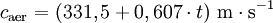 Pentru aer, formula aproximativa de mai jos permite calculul vitezei de propagare a sunetelor īn functie de temperatura, pentru un domeniu de temperaturi īn jur de 0°C: