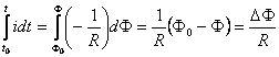 Aici R este rezistenta totala formata din rezistenta conductorului infasurarii cordonului si r rezistenta interna (proprie) a galvanometrului ballistic. Asa dupa cum se va vedea la cursul de ,,Masurari electrice"galvanometrul ballistic masoara integrala in timp a curentului in intervalul 0< t < t0 in care se produce variatia de flux magnetic: