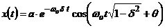 Se observa ca termenul exponential care multiplica functia cosinus, prin prezenta argumentului negativ, are o comportare de apropiere asimptotica de valoarea nula. Aceasta implica o tendinta de diminuare a amplitudinii de oscilatie. Oscilatia, teoretic, nu inceteaza niciodata, dar devine, la un moment dat, practic imperceptibila, datorita evolutiei spre zero a valorii amplitudinii ei. Tendinta de diminuare a amplitudinii depinde de valoarea exponentului negativ al functiei exponentiale.