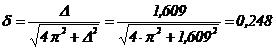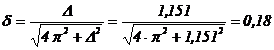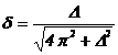 Aceasta relatie poate fi privita ca o ecuatie cu necunoscuta δ, care se reolva prin ridicarea la patrat a ambilor ei termeni. Se obtine