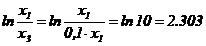 Din enunt reiese ca x3 = 0,1.x1. Se poate scrie ca: