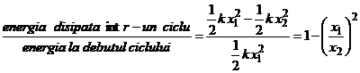 Energia sistemului la inceputul primei oscilatii este egala cu energia potentiala de deformatie a resortului a carui sageata este egala cu amplitudinea x1, iar energia sistemului la sfarsitul primei oscilatii coincide cu energia la inceputul celei de-a doua oscilatii, la momentul in care resortul este deformat cu valoarea amplitudinii x2.