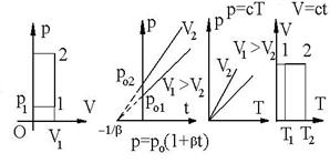2.1.3.3 Legea transformarii izocore (legea lui Charles). Daca volumul si masa unui gaz ramān constante, variatia relativa a presiunii este direct proportionala cu temperatura