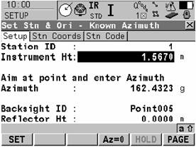 Se vizeaza punctul , se introduc datele , se verifica vizarea , se apasa SET