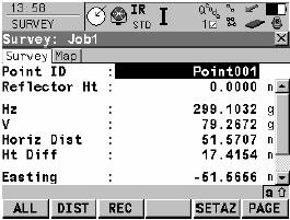 Se introduc valorile dorite, se vizeaza prisma si se apasa: ALL - masoara unghi si distanta si inregistreaza ; REC - masoara unghiurile si inregistreaza ; DIST - masoara distanta si doar o afisaza .