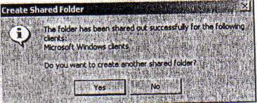 Aceasta caseta de dialog va comunica daca partajarea folderului a reusit. Clic pe butonul Yes pentru a crea alt folder partjat su pe butonul No daca ati terminat de creat foldere partajate.