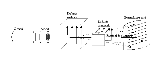 imaginii pe tub catodic. Electronii emisi de catod sunt accelerati de