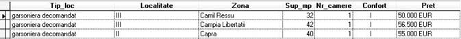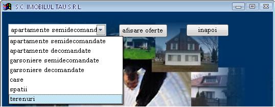 CAUTARE - selectam din combobox-ul ce dorim sa cautam(apartamente decomandate, apartamente semidecomandate, garsoniere decomandate, garsoniere semidecomandate, case, spatii sau terenuri),si dupa ce am selectat apasam butonul "afisare oferte".